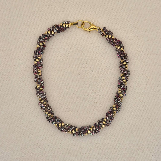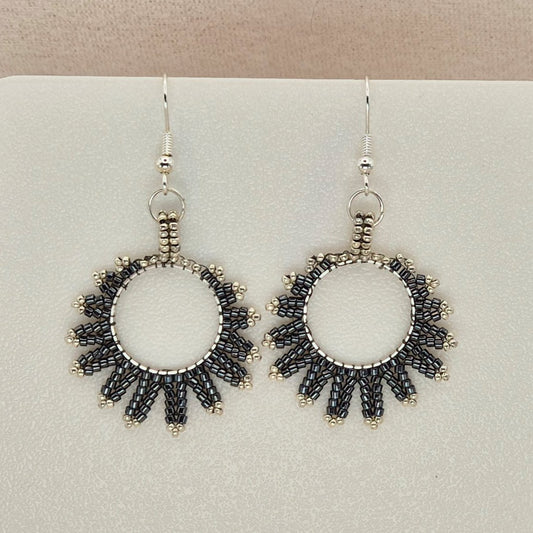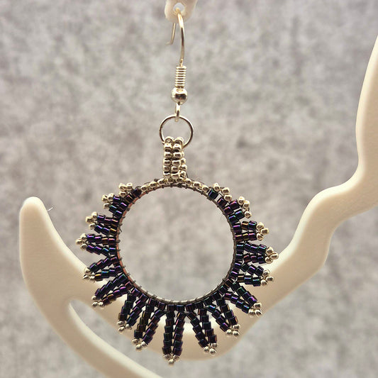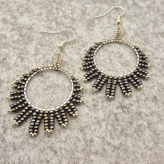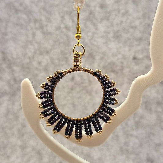 Ornament Ohrringe mit Obsidian Perle in Gold